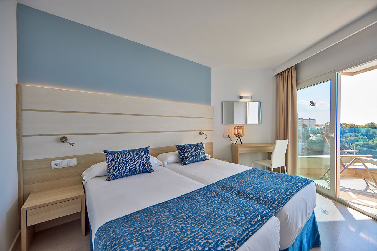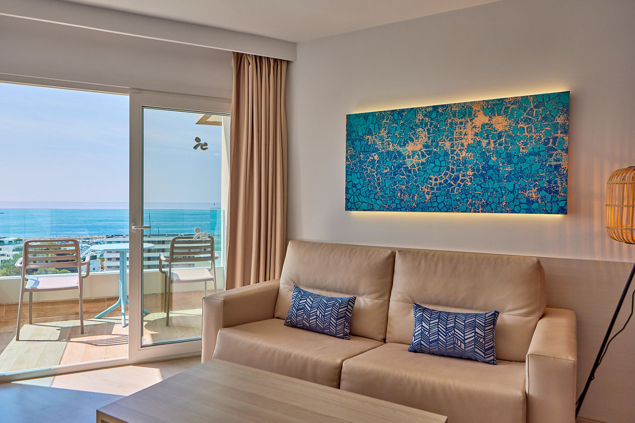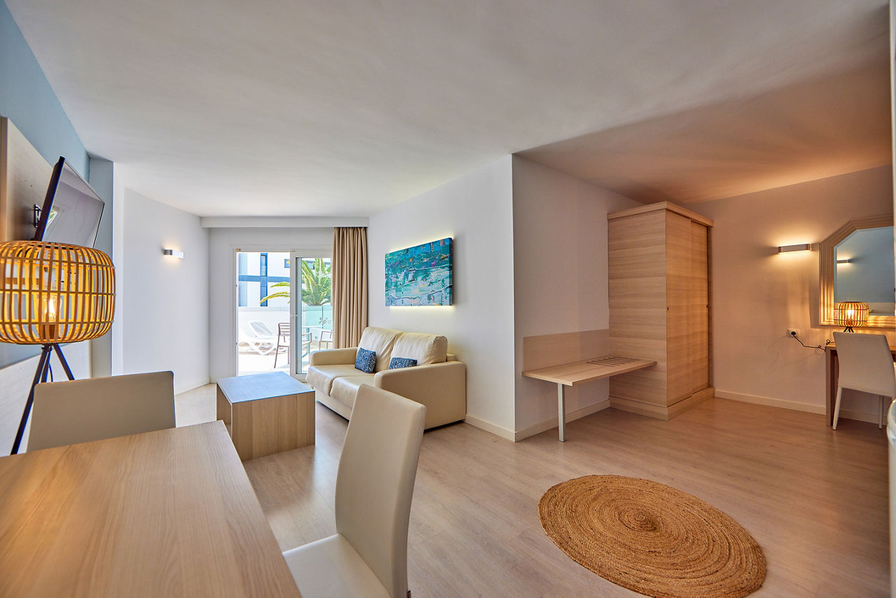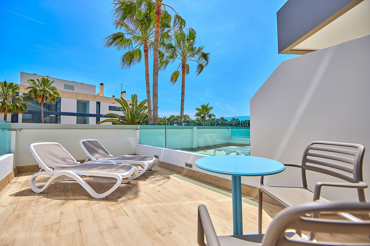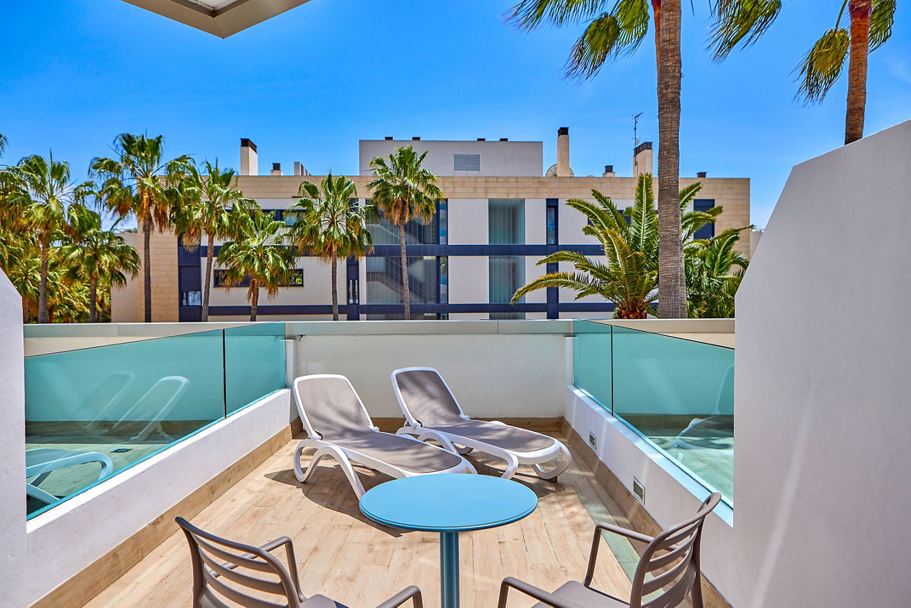 Tomir Portals Suites is located conveniently close to the Marina, home to magnificent views of the bay and nearby resorts, plus great restaurants for dining. The rooms are fresh and modern and the outdoor pool surrounded by lush gardens is the perfect place to relax by day with a spacious terrace and plenty of sun loungers. Tomir Portals Suites is a great choice for couples who want to explore all this resort has to offer.Studio sleeps up to 2 adults with full bathroom, air conditioning*, kitchenette, fridge, satellite TV and balcony or terrace. One Bedroom apartments and Family rooms are also available.