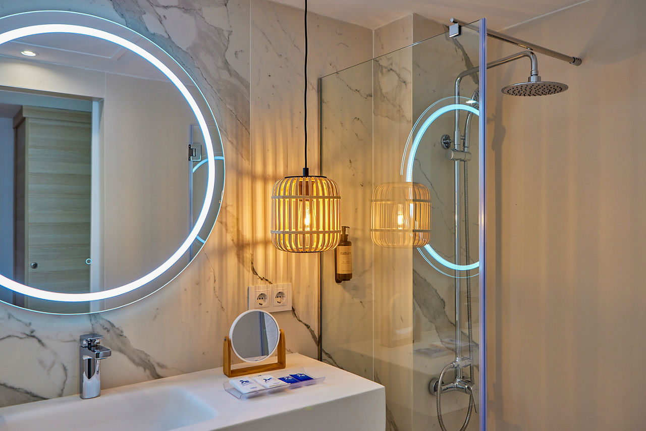 Studio sleeps up to 2 adults with full bathroom, air conditioning*, kitchenette, fridge, satellite TV and balcony or terrace. One Bedroom apartments and Family rooms are also available.